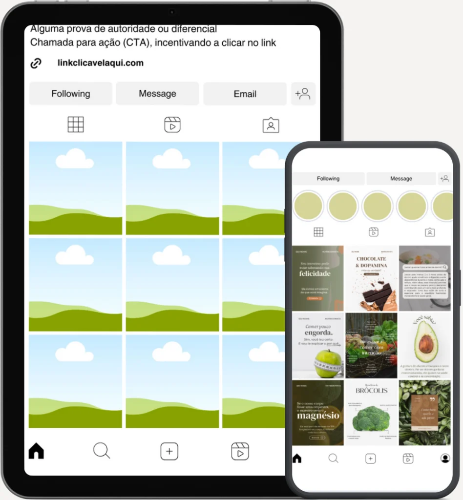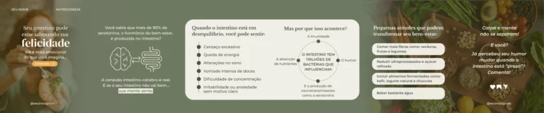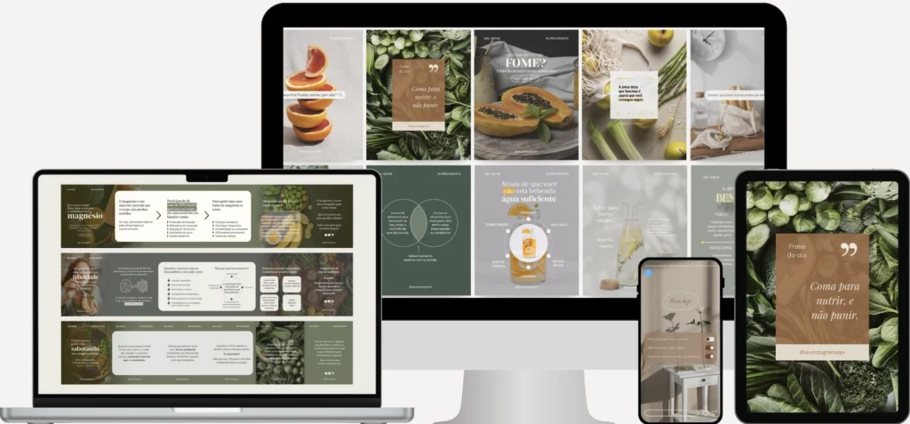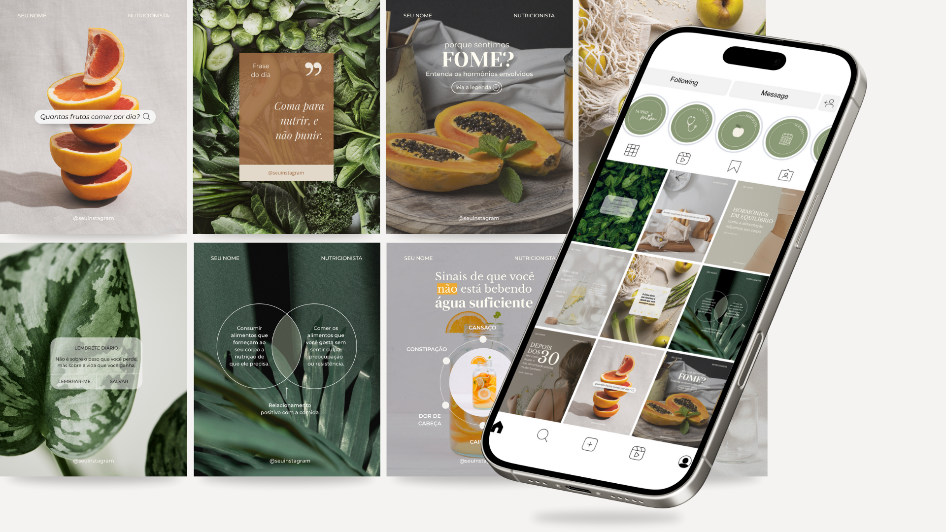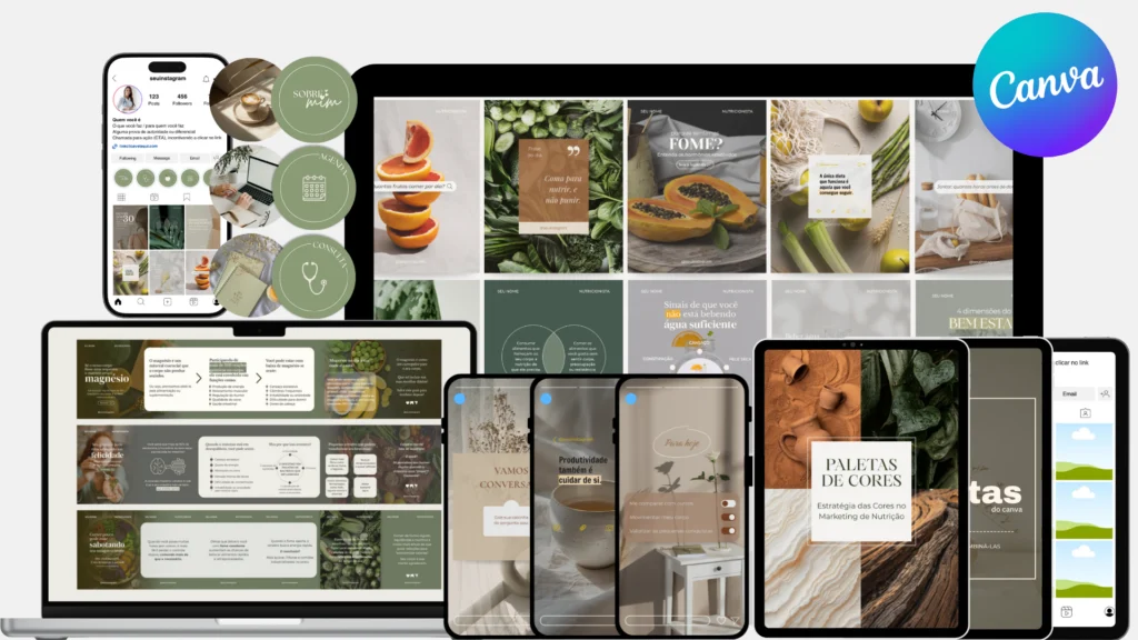 Pensando nisso, criamos o pack “Clareza Nutricional” com posts prontos no Canva gratuito, com temas variados para atrair seguidores, aumentar o engajamento e alavancar seu perfil profissional.